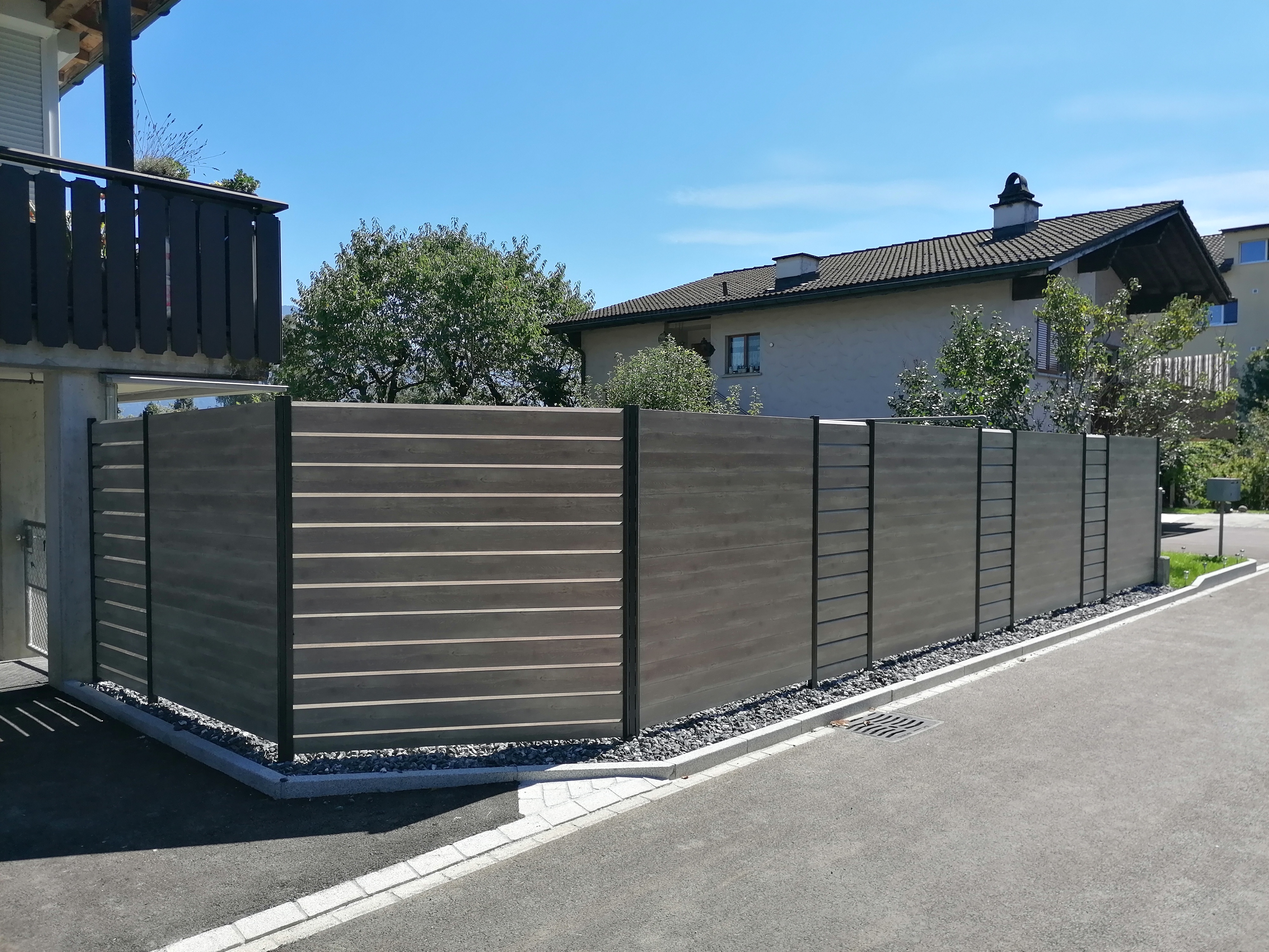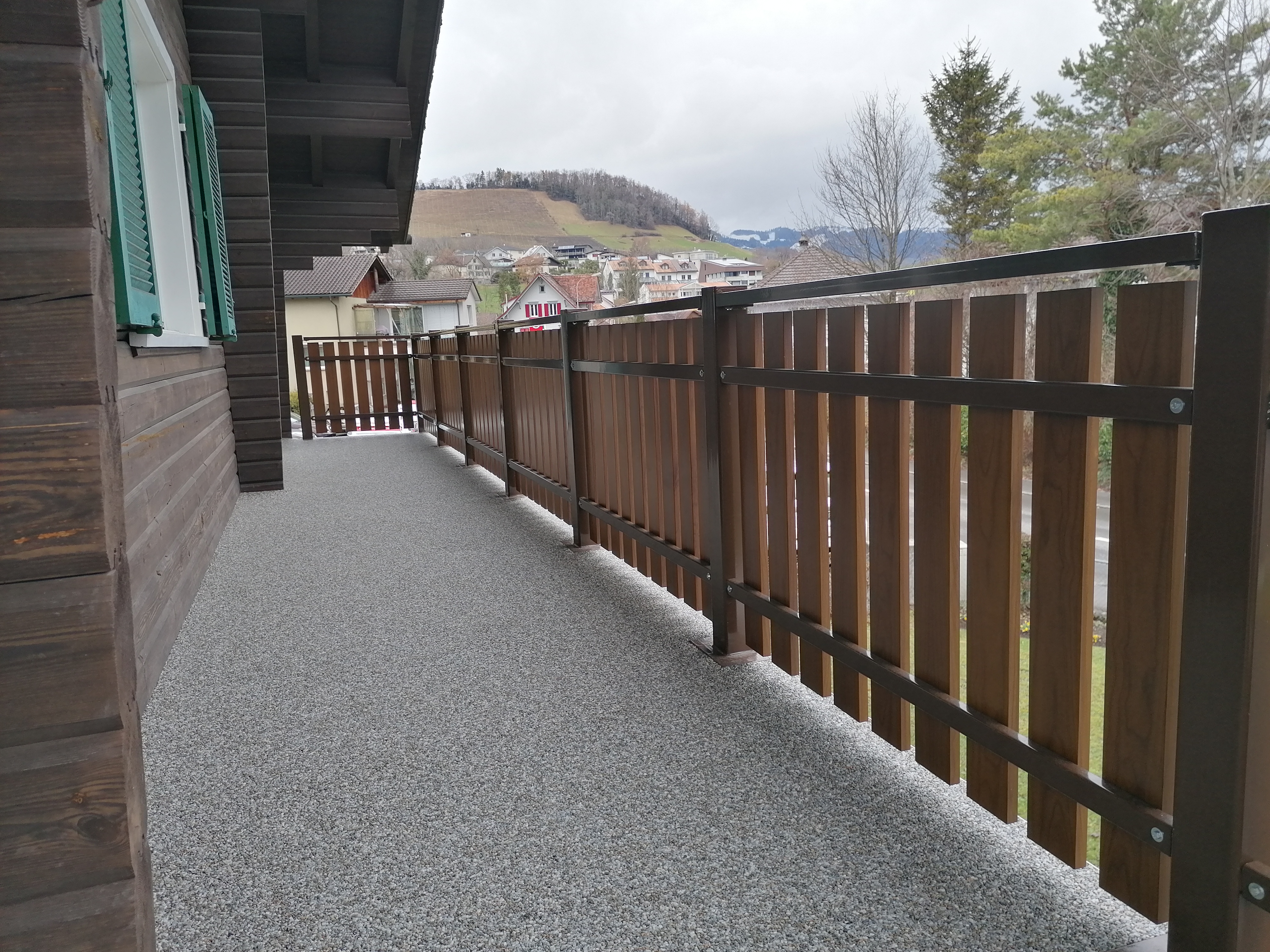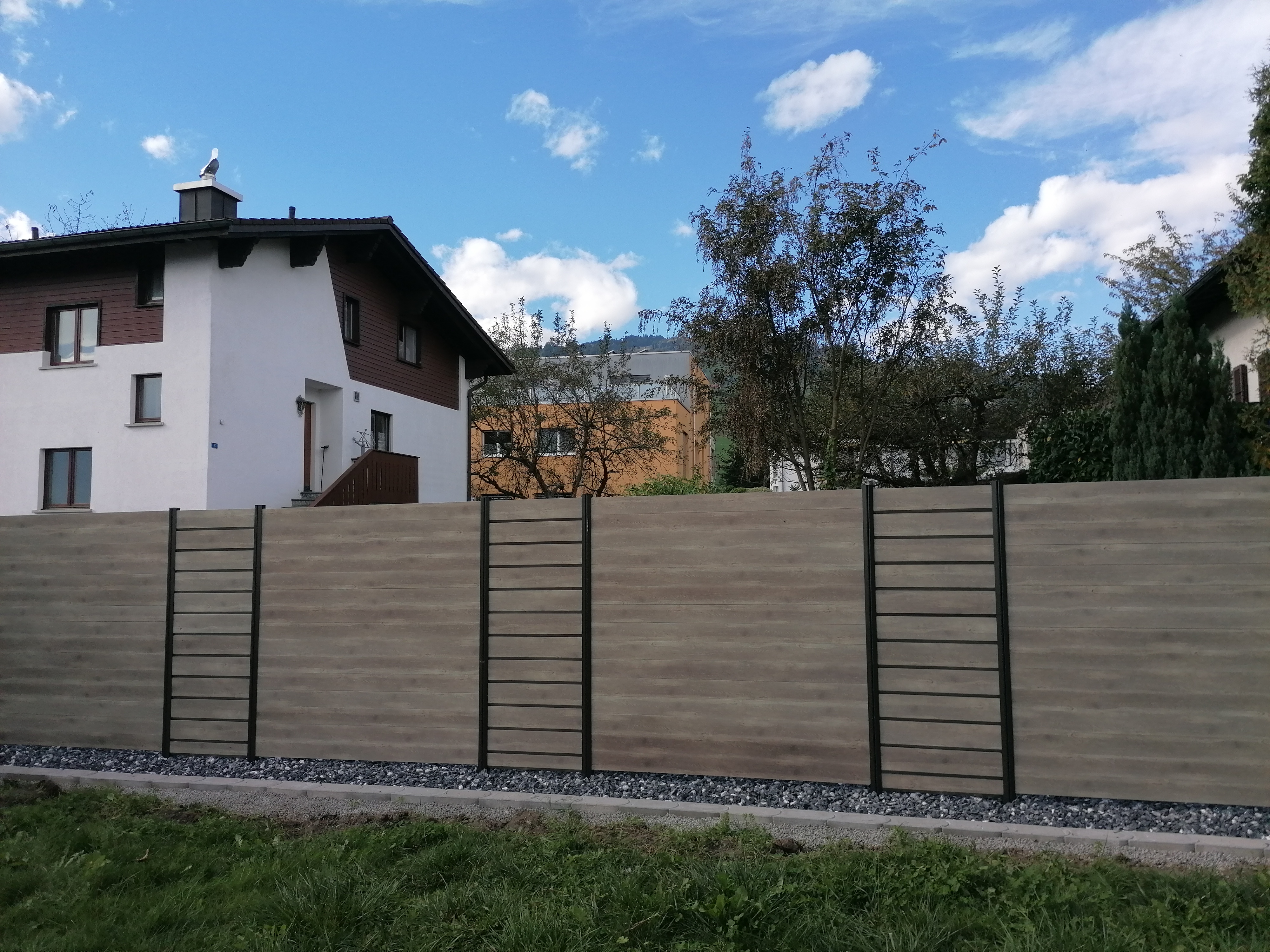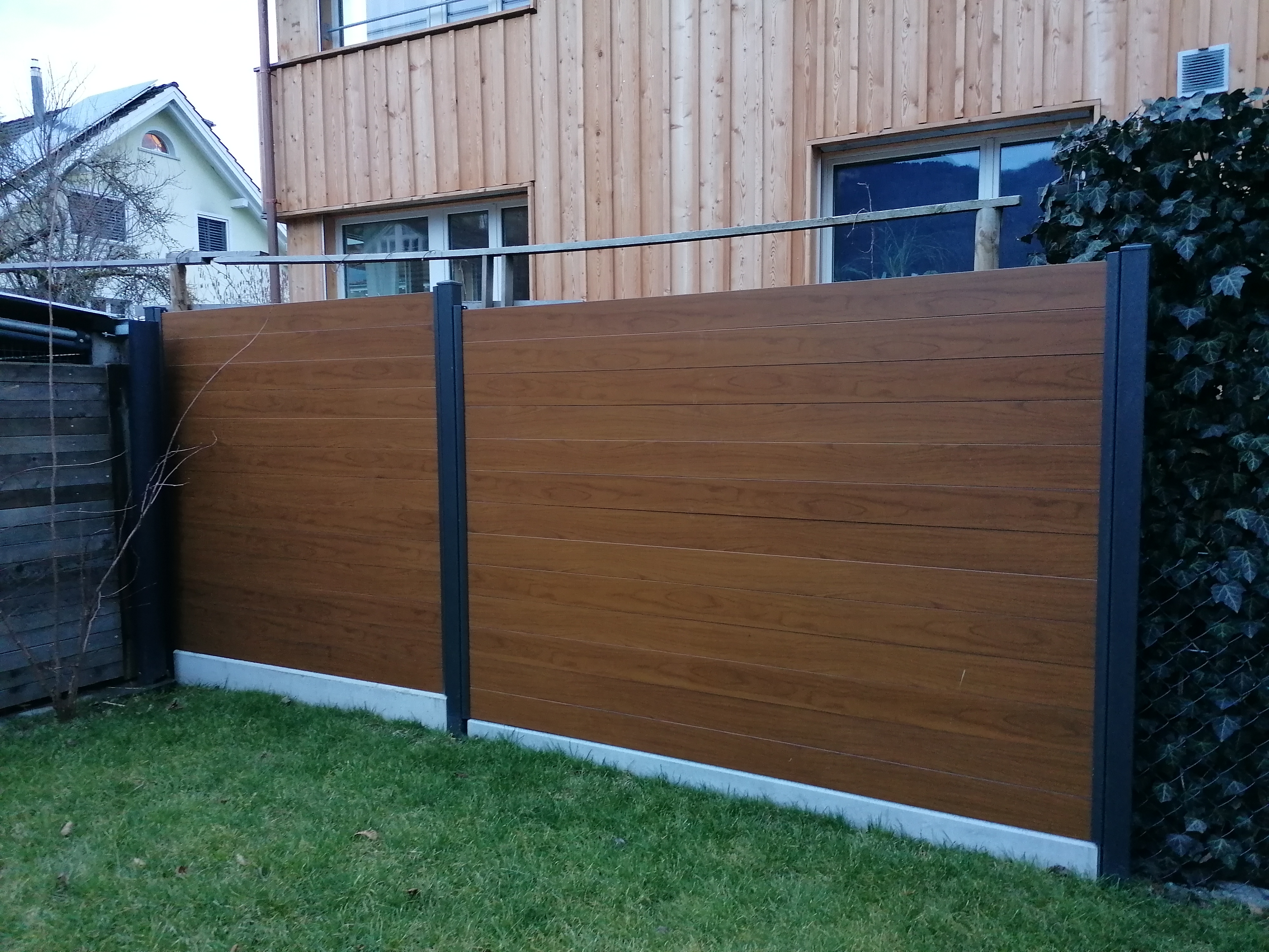 Alu ist die beste Wahl im Aussenbereich. Pulverbeschichtung mit Holzstruktur (Lärche, Nussbaum, Birke, Esche, Swiss Chalet) als Hingucker. Auch Uni-Farben sind nach Wahl möglich. Pfosten aus stabilem Stahl, feuerverzinkt plus, wenn gewünscht, pulverbeschichtet. Mit dem gleichen Grundmaterial können auch Balkongeländer gebaut werden. Fragen Sie uns nach Ideen, wir haben auch für Sie die passende Lösung. Der unten stehende Link führt Sie direkt zu unserem Lieferanten.