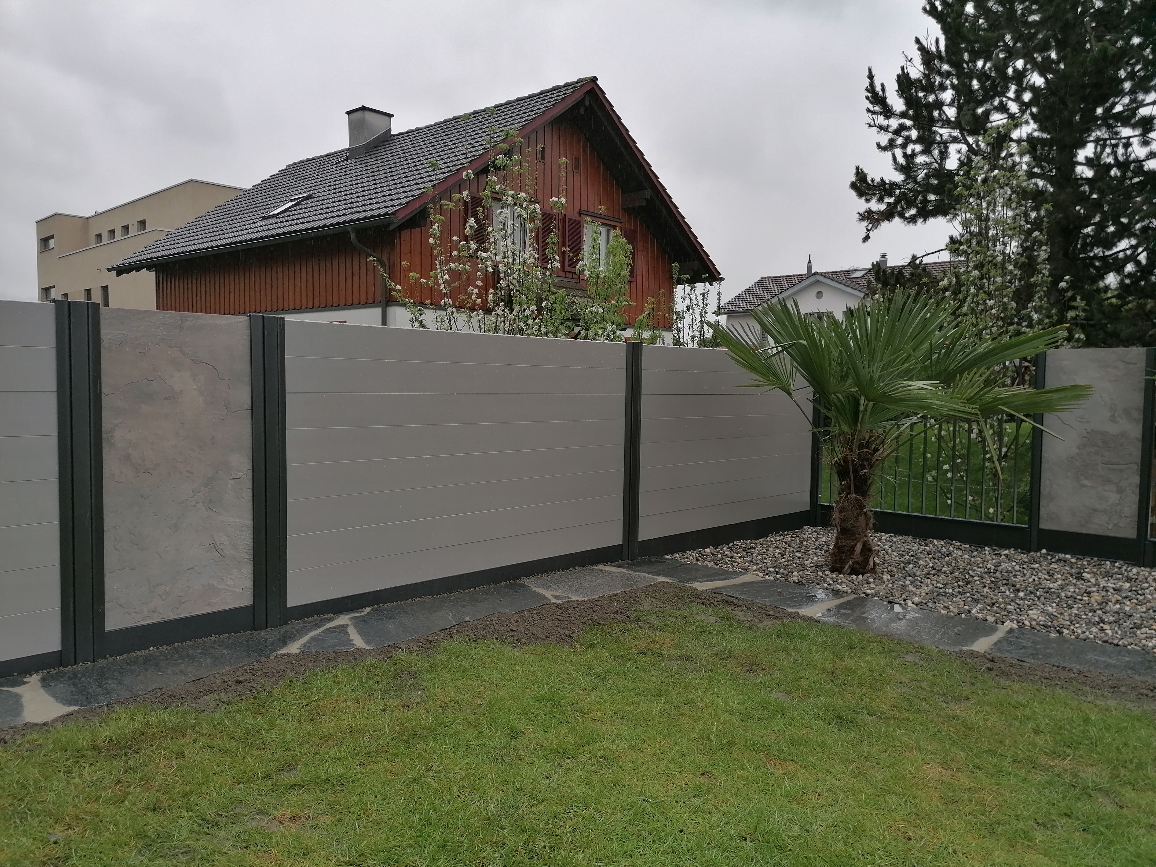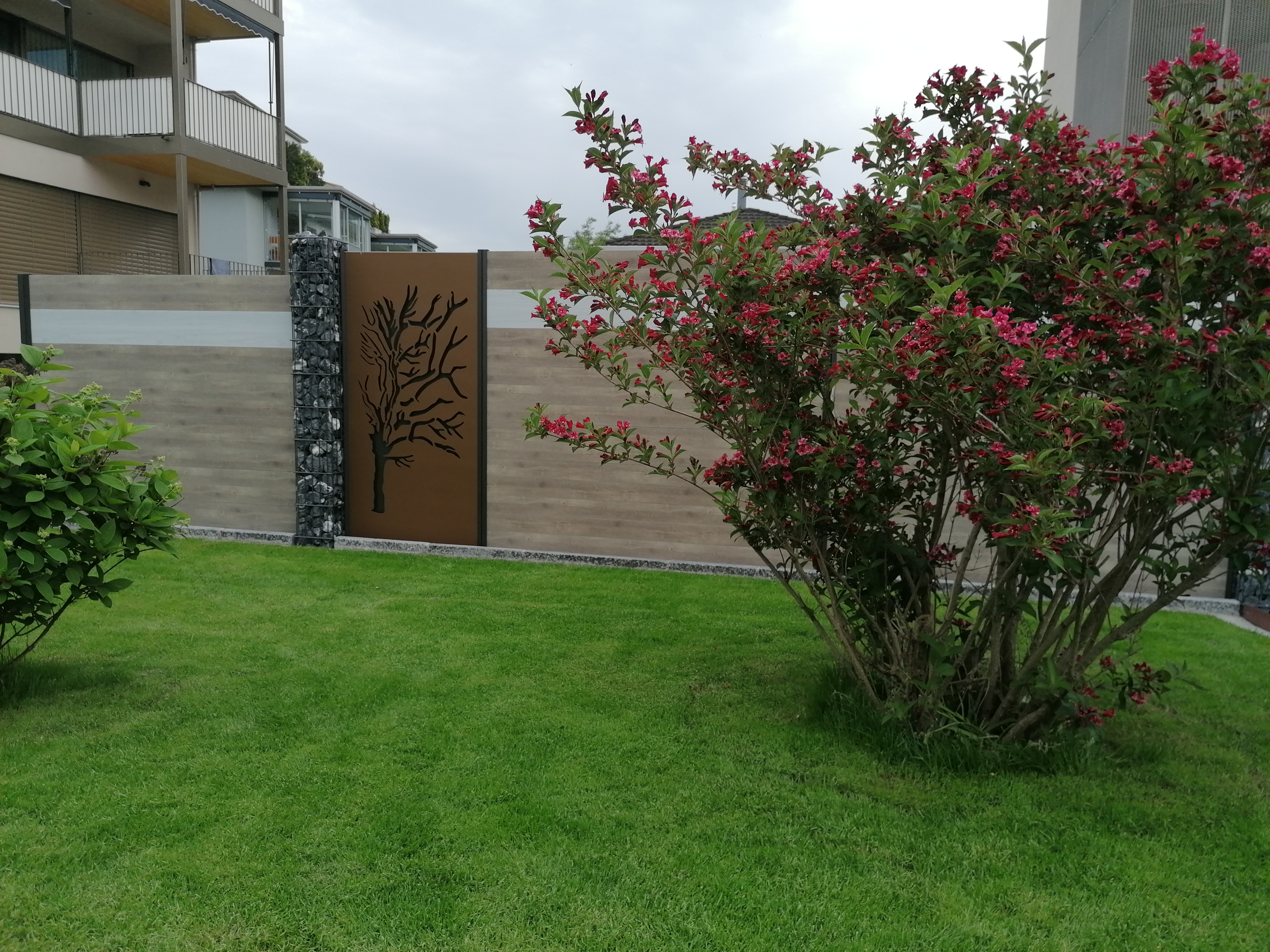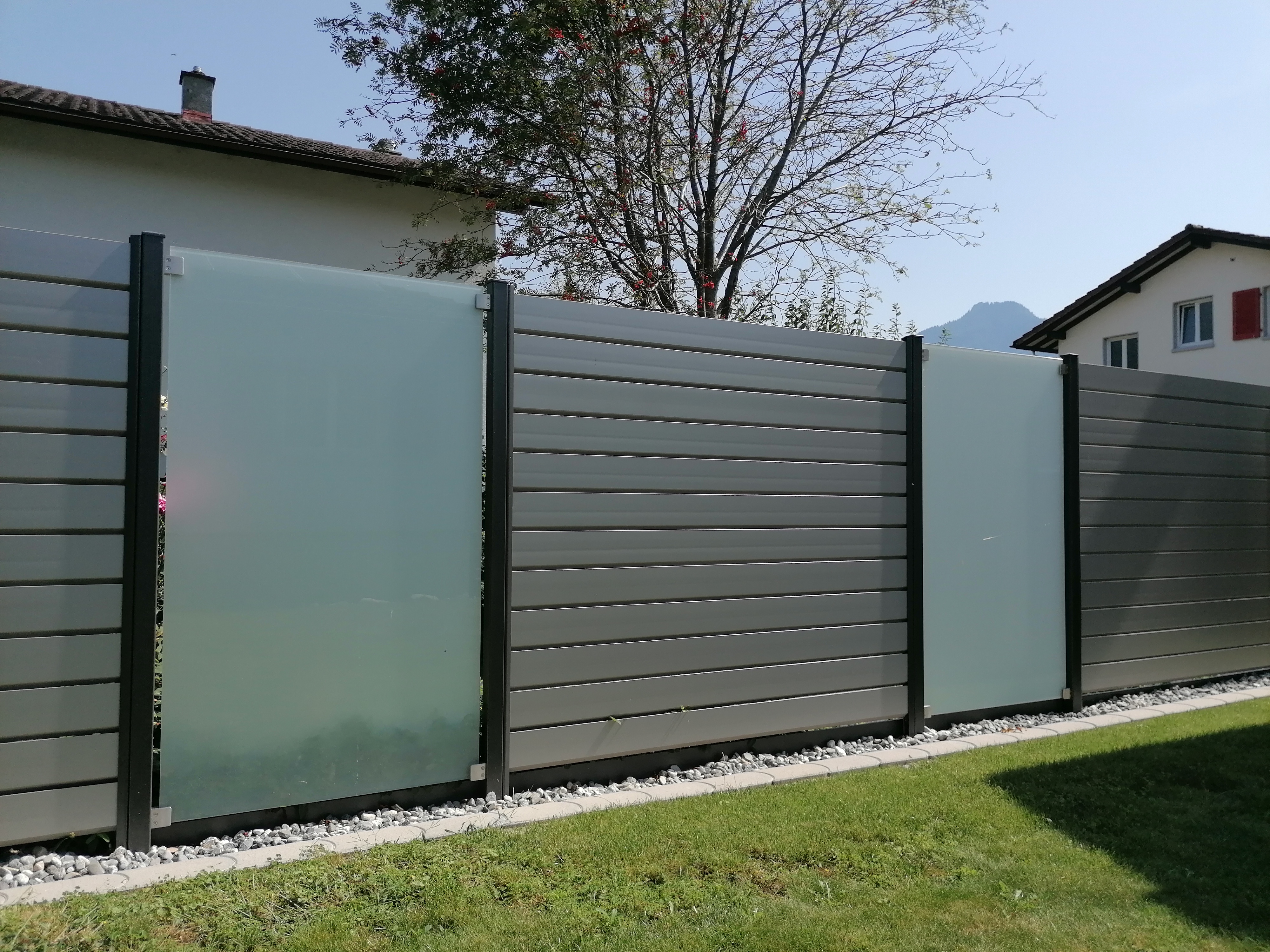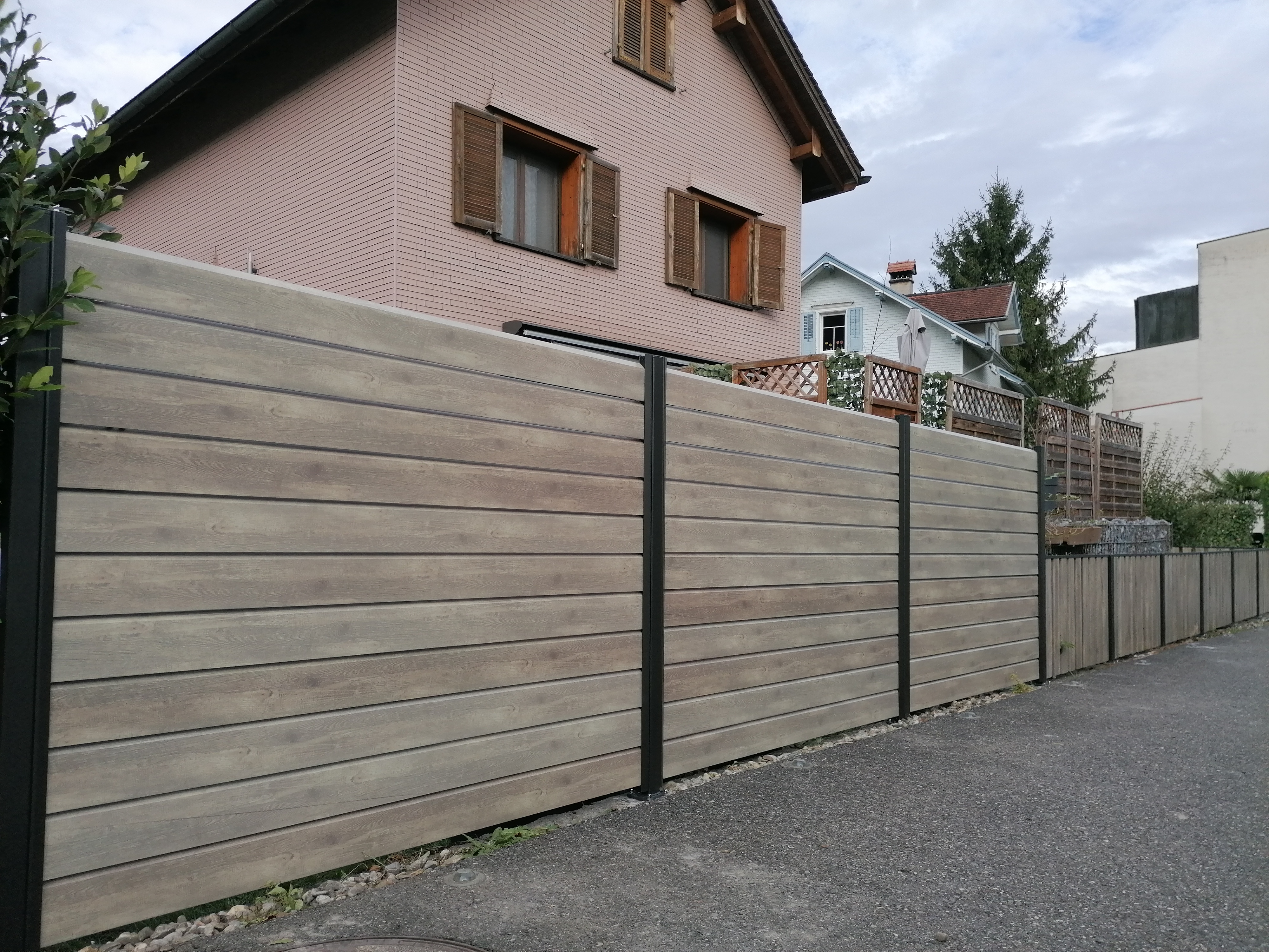 Alu ist die beste Wahl im Aussenbereich. Pulverbeschichtung mit Holzstruktur (Lärche, Nussbaum, Birke, Esche, Swiss Chalet) als Hingucker. Auch Uni-Farben sind nach Wahl möglich. Pfosten aus stabilem Stahl, feuerverzinkt plus, wenn gewünscht, pulverbeschichtet. Mit dem gleichen Grundmaterial können auch Balkongeländer gebaut werden. Fragen Sie uns nach Ideen, wir haben auch für Sie die passende Lösung. Der unten stehende Link führt Sie direkt zu unserem Lieferanten.
