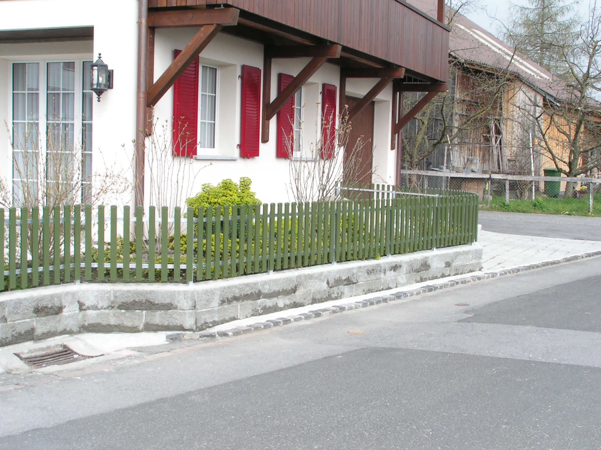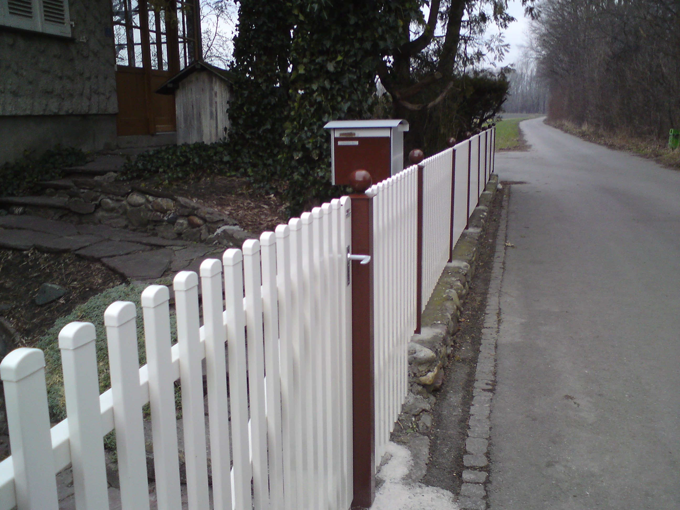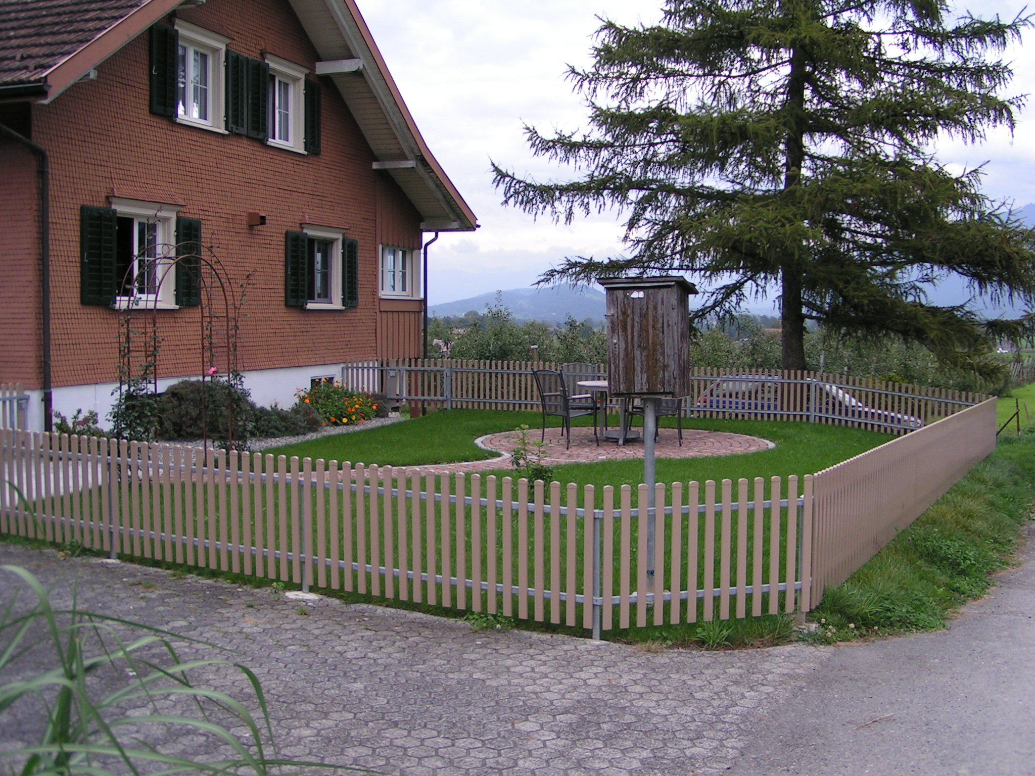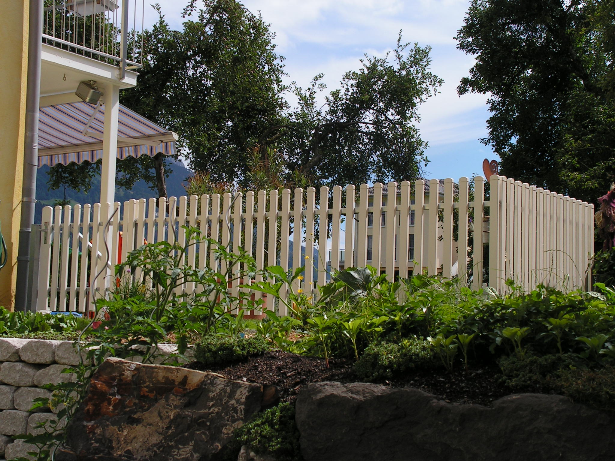 Anstelle von Holzstaketen bieten sich pflegeleichte und witterungsbeständige Alustaketen an.