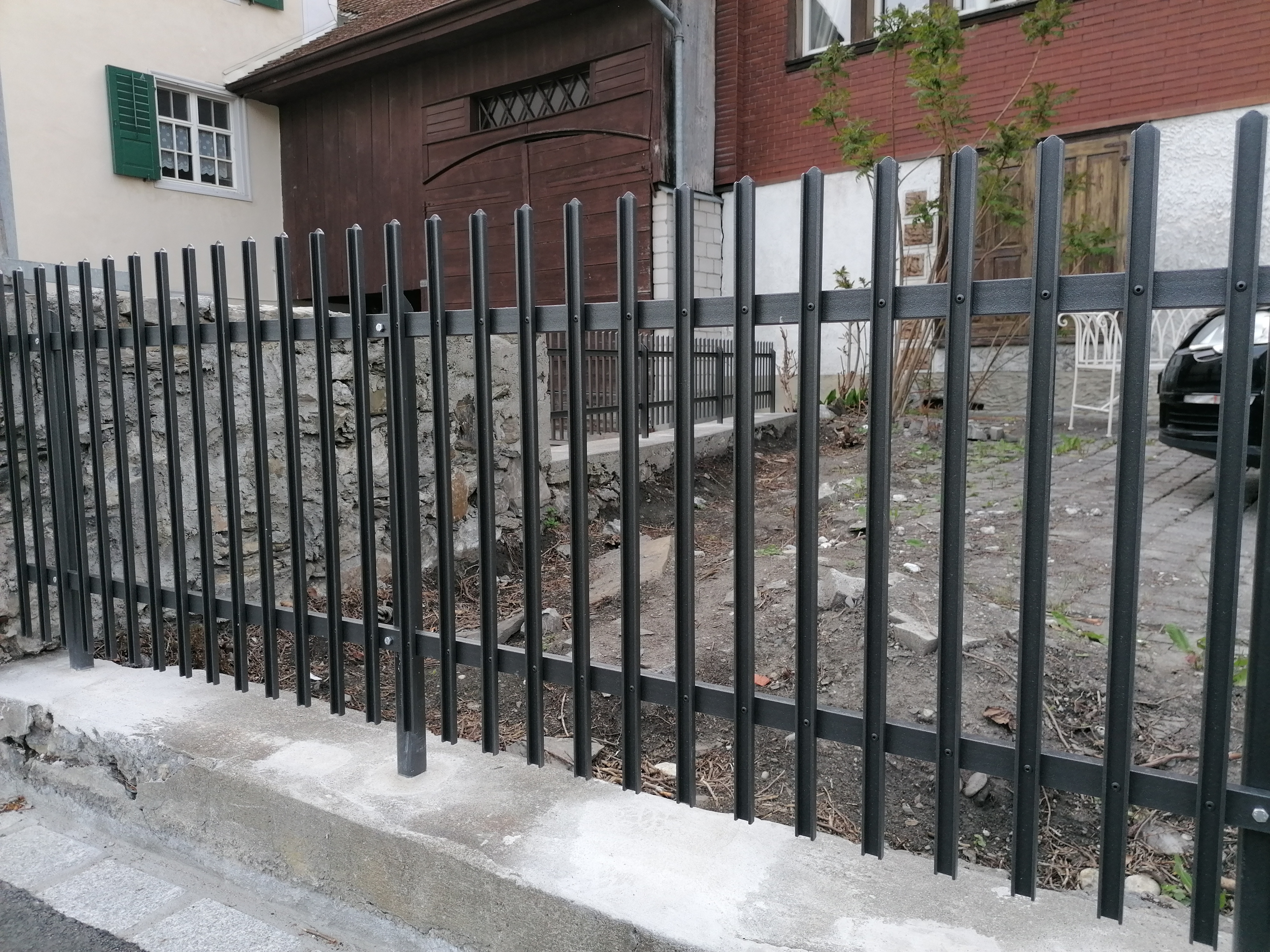 Metall-Staketenzaun mit feinen U-Stahl-Staketen, feuerverzinkt plus pulverbeschichtet